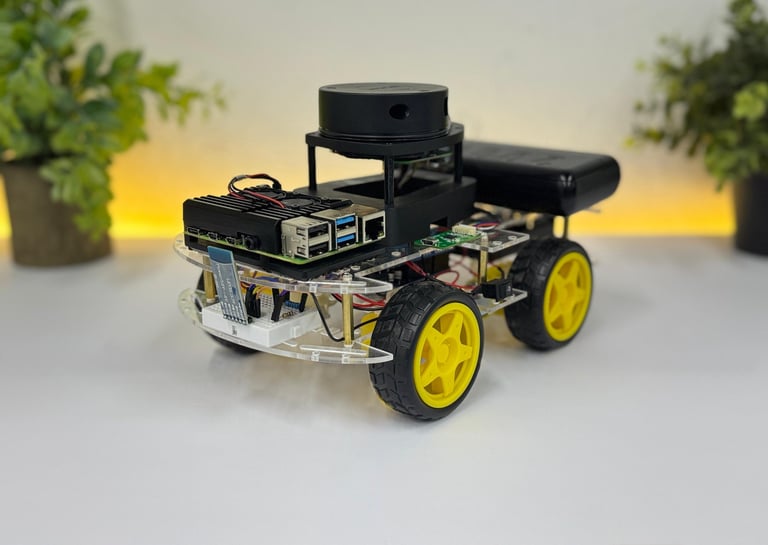 This project is an AI-powered mobile robot capable of both voice-controlled operation and semi-autonomous navigation using the Robot Operating System (ROS). The robot can be controlled via a custom Bluetooth app that interprets natural voice commands, or it can navigate autonomously using a LiDAR sensor and ROS to map its environment and avoid obstacles. It integrates Arduino and Raspberry Pi systems, serving as a versatile platform for learning and demonstrating intelligent robotics applications.